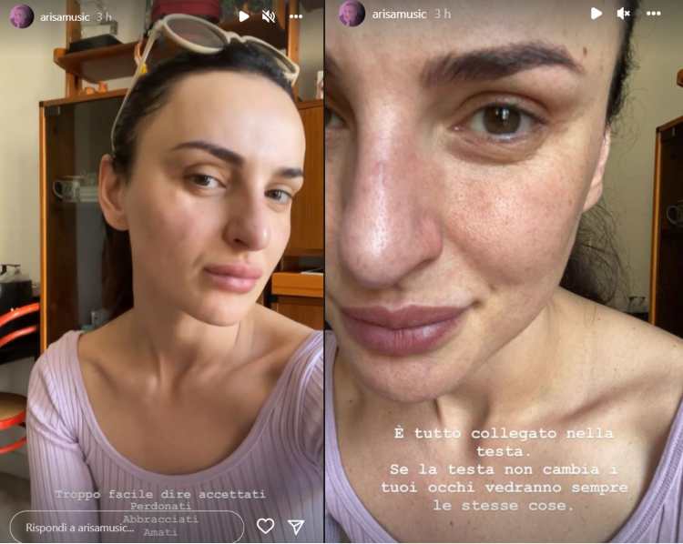 La sua immagine chiara e nitida è apparsa tra le storie su Instagram: “Troppo facile dire ‘accettati, perdonati e amati‘ – scrive Arisa – è tutto nella tua testa, se quella non cambia gli occhi vedranno sempre le stesse cose” questo il messaggio della cantante attraverso il suo profilo.